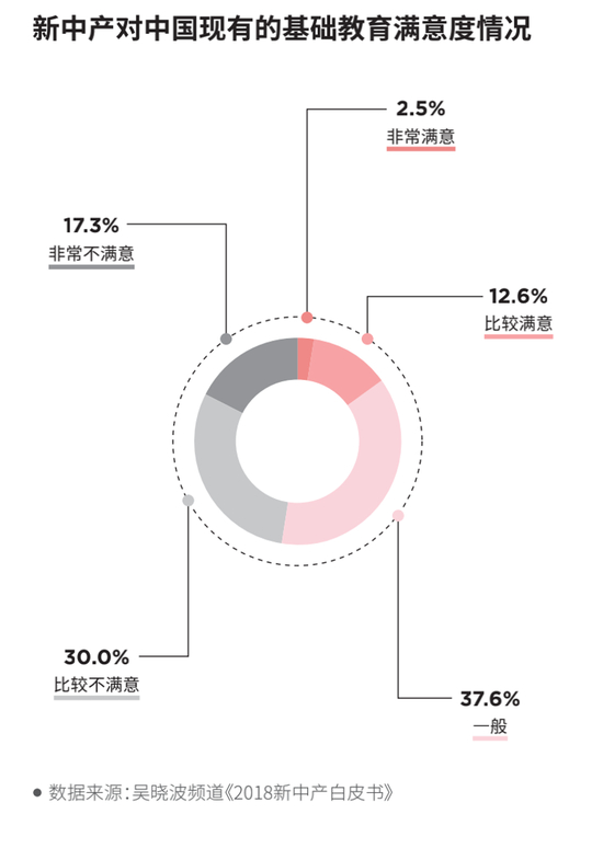 所以,在看待中国的基础教育时,有47.3%的新中产选择了难以令人满意。