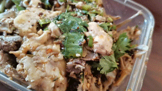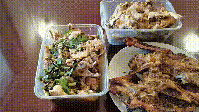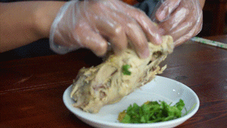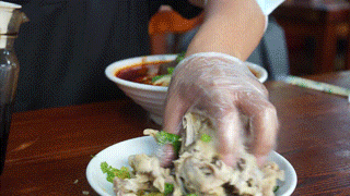 用鸡汤熬煮出的鸡架,闻起来香而不腻,搭配上榨菜末、香菜末再来点辣椒油,完美!吃之前,必须要有一个简单而又复杂的过程,那就是拆鸡架。