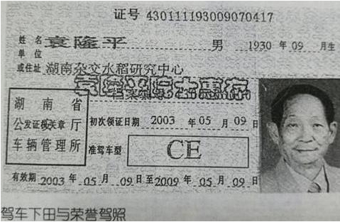 50. 为工作方便,袁隆平70多岁时,开始考虑为自己购入一辆小轿车,但我国相关的规定是申请小型汽车以及其他类型汽车的年龄必须在十八周岁到七十周岁之间。这个情况被相关的部门了解到,最后决定为袁隆平先生发放驾驶证。不过这个驾驶证十分特殊,和其他人的驾驶证都不一样,仅限于从家里到试验田的距离,驾照上面还多加的七个大字——“袁隆平院士惠存”。