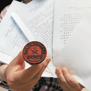 西引力小区原业委会成员展示其仍妥善保存的公章及胜诉判决