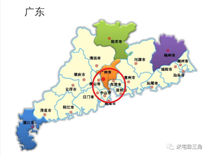 粤中:广州,深圳,东莞,佛山,珠海,惠州,中山,肇庆,江门。