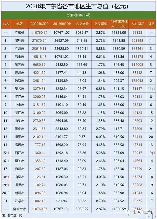 2020年,广东省的GDP仍然全国排名第一,110761亿,第二名江苏,和广东只差8000亿。