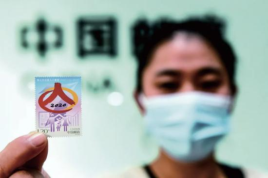 2020年11月1日,集邮爱好者展示刚发行的《第七次全国人口普查》纪念邮票。图/人民视觉
