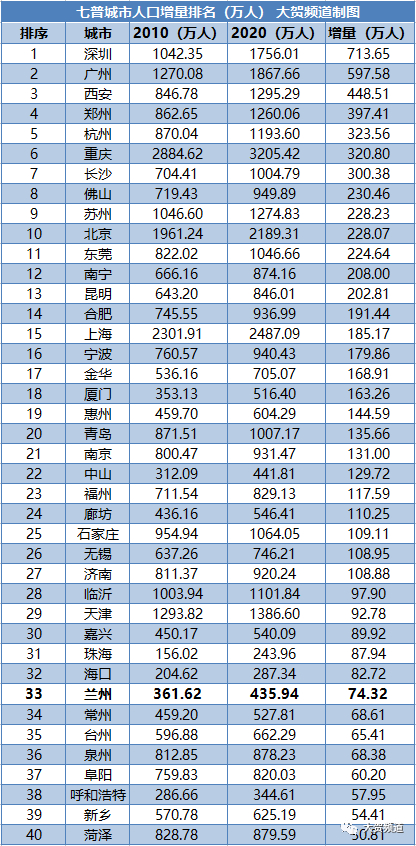 兰州“七普”,435。94万人!兰州总人口首次突破400万大关,人口暴增74。3万人。2019年末兰州常住人口仅为379万。这个增量虽然不能与深圳、西安等超级城市城市相比,但是超70万的人口增量,也预示着兰州彻底走出最低谷,开始重新走上增长的轨道。