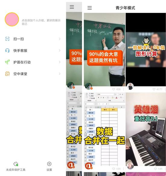 快手的青少年模式较为单一,在未来的开发利用上或许可以提供青少年群体更多选择。