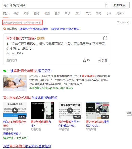 养娃的过程就是斗智斗勇。从小时候偷看电视后,给电视扇风降温,到长大后的不断尝试密码,形式不同,原理相似。网络上搜索“青少年模式解除”,就可出现2万多条相关信息。