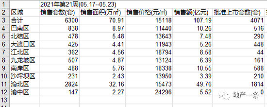 销售情况火热,重庆在供应端也非常充足,克而瑞数据显示,仅仅5月17日至23日一周时间,重庆主城区商品房供应58.37万平方米,环比上涨82.98%,在供应量方面明显持续上涨。