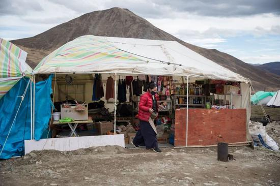 营地里开了十几家小卖铺,副食及日用品摆满货架。商品虽然齐全,但有两样东西坚决不卖——打火机和酒。前者是为了草原防火,后者是防止人们喝醉生事,也怕加重高原反应。