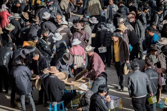 2021年5月21日早上9时许,理塘县虫草市场,交易的商人们