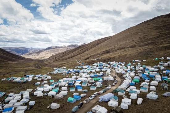 2021年5月21日,密密麻麻的帐篷驻扎在阿加沟虫草采集区