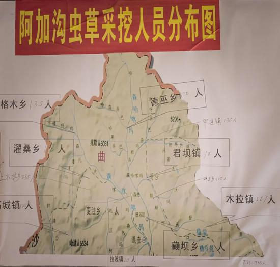 此外,因为虫草的珍贵和稀少,早些年经常为争夺虫草资源发生械斗,甚至致人伤亡的事件。尤其是发生在外来人和本地人之间。阿加沟虫草联合工作组的一位组员告诉记者,他们的组长之前劝解一起采挖虫草边界纠纷时,在混乱的械斗中被人“敲开了脑袋”。