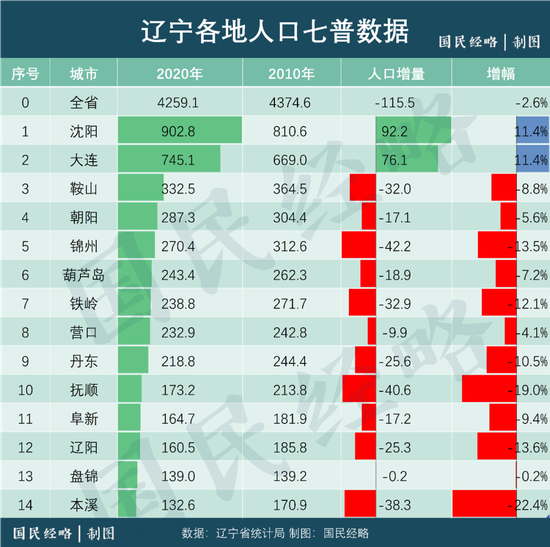 然而,值得警惕的是,除了沈阳、大连、长春之外,东北所有地市人口都在下降,一些城市甚至减少了上百万之多,个别城市人口降幅超过20%以上。