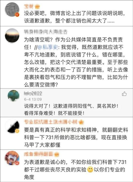有网友认为它没有说明道歉和关闭账号的原因是给日军731“洗地”,司空见惯地甩锅给前线员工,因此再度指责其在原则问题上避重就轻,道歉态度不真诚。