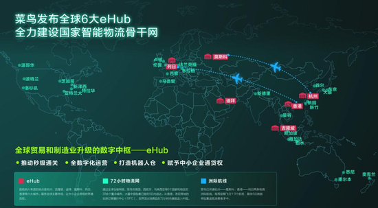 目前,菜鸟在全球布局6大数字贸易枢纽,拥有数百万平方米的海外仓网络和每年超过 1800 条国际海、空货运航线。通过数智化的物流平台和完善的本地配送网络,可在全球 220 余个国家和地区提供门到门的物流配送服务。