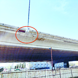 5月9日,笔者来到东四环四方桥附近,看到由东四环进入京哈高速的匝道桥上,两旁的装饰砖几乎全部脱落,桥体侧面全部裸露着。一位行人说:“我以前路过这一带时,曾经看到有装饰砖脱落的情况,幸好当时没有车辆和行人经过,才没有造成严重后果,希望管理部门经常进行巡查,发现问题及时处理,避免发生危险。”