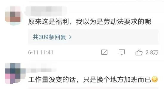 也有网友表示:“原来这是福利,我以为是劳动法要求的呢。”