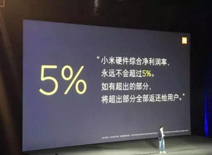 就在小米上市前期,雷军曾表示:“小米公司‘硬件综合净利润率’永远不超过5%,如有超出部门将全部返还给用户。”