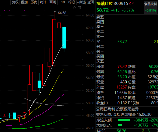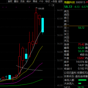 该股近期股价异动明显,一度从50元下方涨到最高近65元。