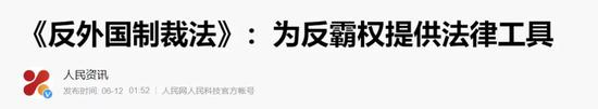 这个大招就是《反外国制裁法》。