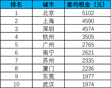 根据贝壳研究院的数据,去年杭州的套均租金3505元,排在全国第四,仅次于北上深,比广州贵了近800元,比全国房价排名第四的厦门贵了近1300元。