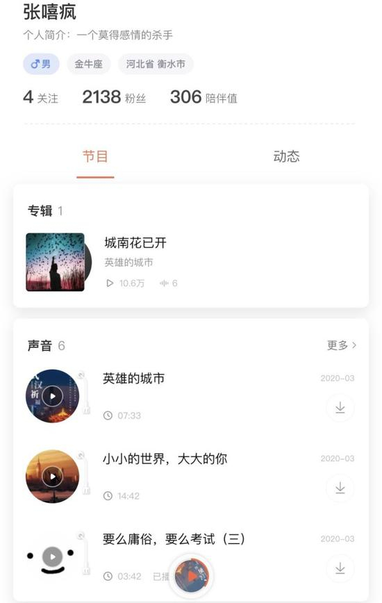 张锡峰的喜马拉雅也有2000多名粉丝