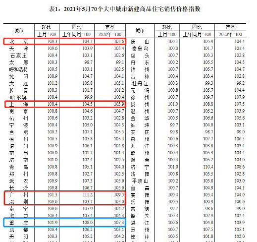 6月17日,国家统计局公布了2021年5月份70个大中城市房价数据。