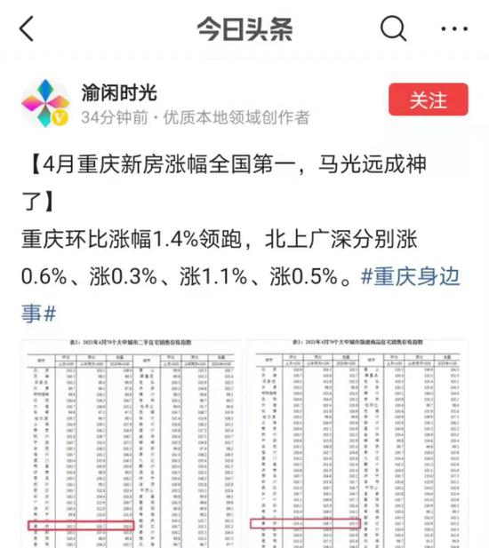 我的这个观点和过去一样,遭到了很多人的抨击。只是这个预测兑现的有点快,到了4月份,重庆的房价涨幅已经到了全国第一。我为重庆很多想买房的老百姓感到庆幸,因为尽管4月份涨幅全国第一,5月份重庆房地产的热度不减,但总体而言,现在出手仍然不算晚,等到年底涨起来再后悔来不及了。