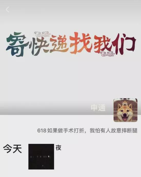 笔者加了一位快递小哥的微信,某天晚上小哥加班发了个朋友圈,无意间点进去发现小哥的签名是:“618如果做手术打折,我怕有些人故意摔断腿。” 可见小哥内心的咆哮。