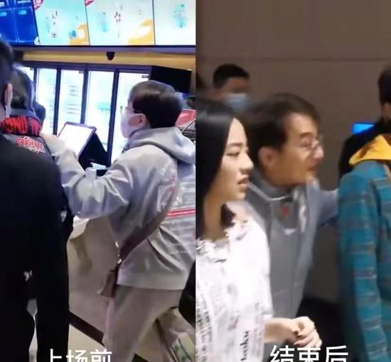 成龙戴着口罩,模样有些憔悴,走路需要2人挽扶有些心酸。