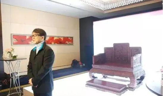 在成龙60岁寿宴上,成龙的一件紫檀雕云龙纹宝座被英皇主席杨受成以650万元拍下。