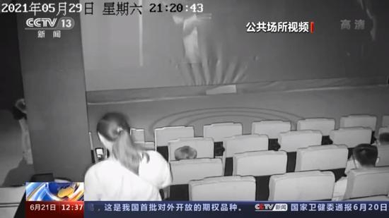 洛阳市格调电影工厂影院 陈经理:因为2号厅当时有色差,然后我当时是把顾客安排到5号厅,然后跟顾客进行沟通,因为当时播放有晚场,所以说当时安排完以后就回到办公室,刚坐下就看见监控上面画面就是小孩正在拍打银幕。