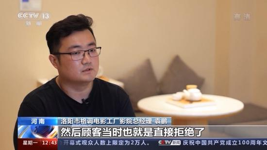 洛阳市格调电影工厂影院总经理 袁鹏:然后6月2日早上8点我们协商的时候,这位女士还是坚持自己的观点,认为影院方是有责任的,还是没有起到,因为她不知道银幕是不可以拍打,不可以触摸,而且这么贵重。我们当时也没有协商成功,当时因为时间确实比较长了,我们就准备起诉了。
