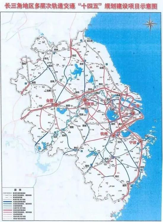 在近日发布的《长江三角洲地区多层次轨道交通规划》中,展示了一张“十四五”期间规划建设项目示意图。