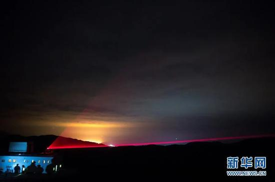 “墨子号”量子科学实验卫星与阿里量子隐形传态实验平台建立天地链路(2016年12月9日摄,合成照片)。新华社记者 金立旺 摄
