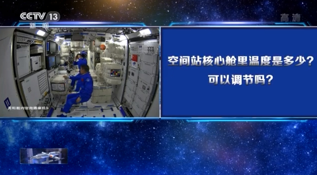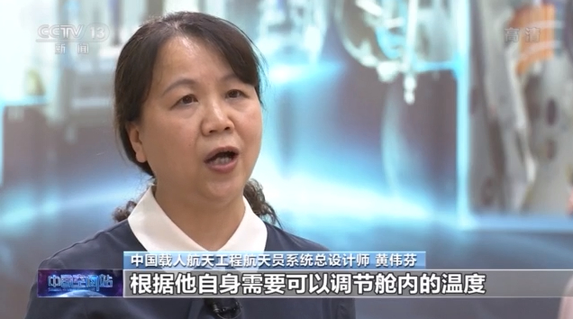 中国载人航天工程航天员系统总设计师黄伟芬:比较合适,23度左右,这个可以调。如果觉得热了,就可以调冷一点,如果觉得冷了就可以调高一点,根据他自身需要可以调节舱内的温度。