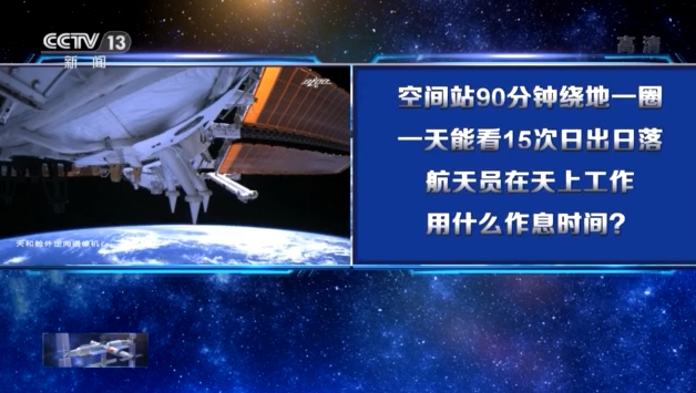 中国载人航天工程航天员系统总设计师黄伟芬:现在我们在轨航天员作息制度就是天地同步,因为我们长期飞行的时候将来地面这么多的工作人员也要在飞控值班,所以我们在轨航天员作息制度跟地面是天地同步的。