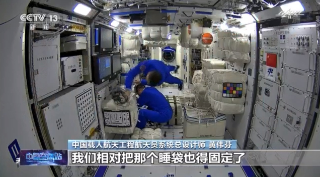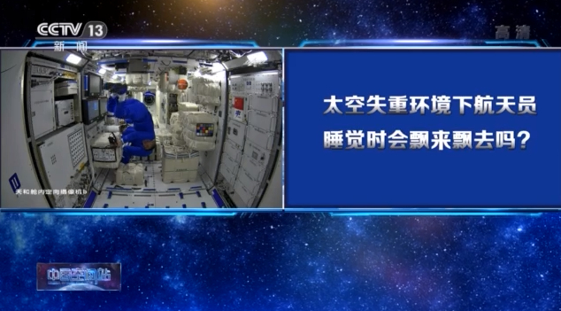 中国载人航天工程航天员系统总设计师 黄伟芬:他就钻到睡袋里头,我们把睡袋也得固定了,如果你不固定了,当他睡着的时候,就跑了,睡袋就会飘起来了。他们一般也就穿个内衣睡觉,或者穿个休闲服,这根据个人喜好,没有固定规定。