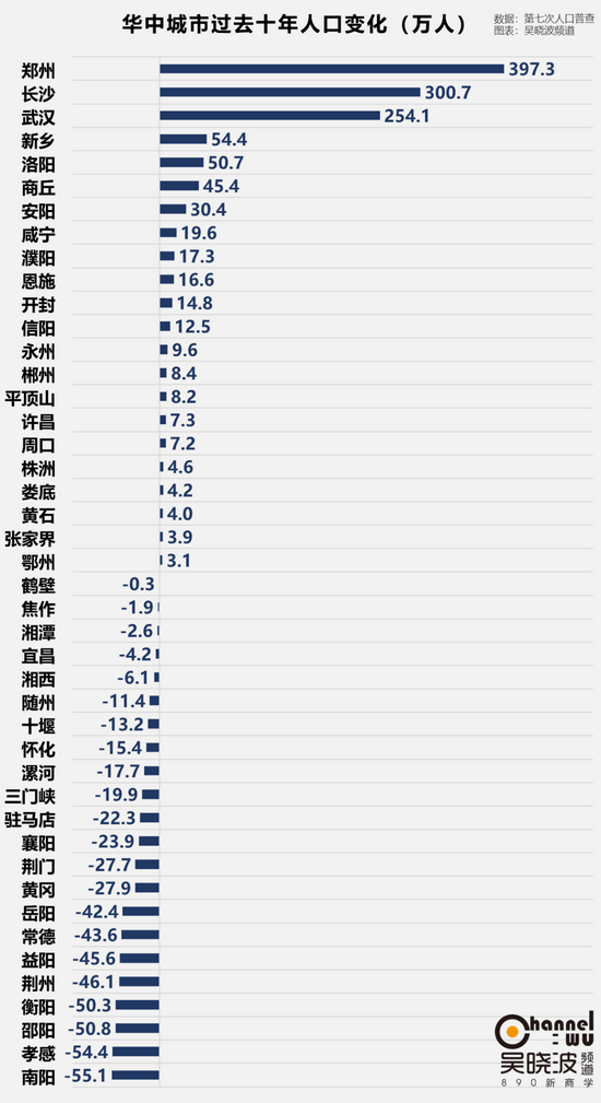 华中地区,3座省会城市的人口增量遥遥领先。