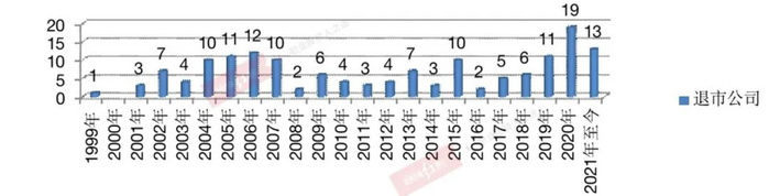 图11:A股历年完成退市公司数量