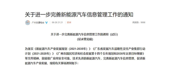 关于进一步完善新能源汽车信息管理工作的通知(试行)(征求意见稿)全文如下: