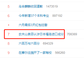 “农夫山泉否认涉日本福岛进口成分”登上微博热搜