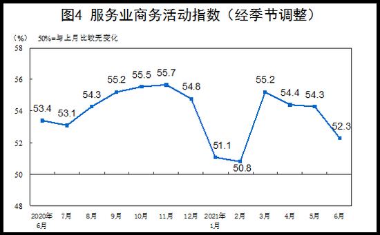 统计局:中国6月份非制造业PMI为53.5% 较上月回落1.7个百分点