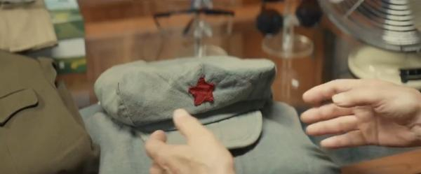最后,他终于跟着一对爷孙找到一家卖军装的商店。看见店里的人向屏幕里成功发射的火箭敬礼,他也立刻敬了个标准的军礼。
