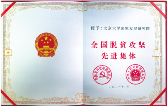 2021年2月,全国脱贫攻坚总结表彰大会在人民大会堂隆重举行,国家发展研究院作为北京大学扶贫工作的杰出代表,获评全国脱贫攻坚先进集体。