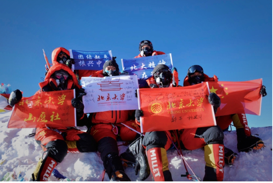 2018年5月15日10时23分,北京大学珠峰登山队成功登顶世界第一高峰——珠穆朗玛峰,在世界之巅喊出“北大精神,永在巅峰,团结起来,振兴中华”的铮铮誓言。