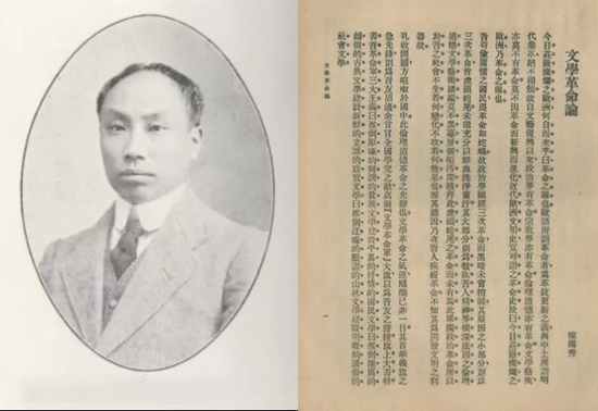 陈独秀1917年被聘为北京大学文科学长,中国共产党的主要创始人之一和早期领导者。右图为1917年2月陈独秀在《新青年》第二卷第六号上发表《文学革命论》。