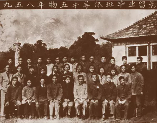 1956年,中国第一个“联合半导体物理专门化”在北大成立,集中力量加速培养国家急需的半导体科技人才。图为第一届“联合半导体物理专门化”的毕业生与教师合影。