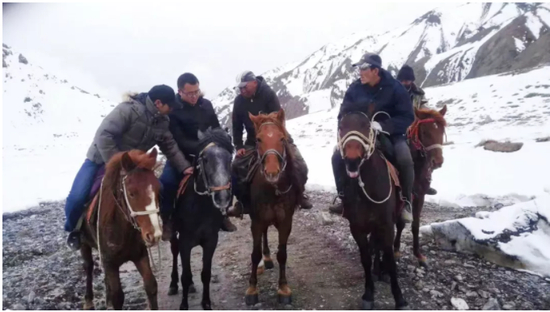 北京大学加大就业引导力度,让青春在党和人民最需要的地方绽放绚丽之花。图为北大国际关系学院 2014届毕业生、新疆克州阿克陶县皮拉勒乡工作的钟梓欧(左二)带领护边员巡边。