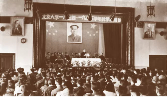 从1955年到1963年,北大共举行了7 次“五四科学讨论会”。图为1955年5月4日,北大召开第一届“五四科学讨论会”,率先发起了科学大讨论。