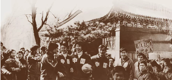 1981年,中国男排在世界排球锦标赛亚洲区预选赛上苦战五局,夺得冠军。消息传来,北大学生自发喊出了“团结起来,振兴中华”的时代强音。